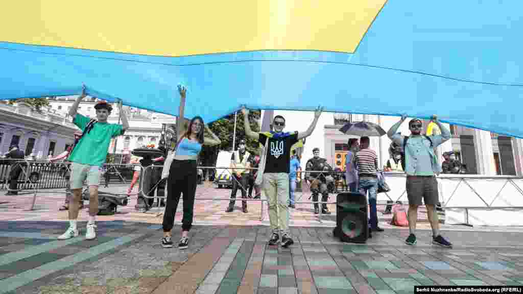 В Киеве активисты развернули под зданием Верховной Рады флаг крымскотатарского народа, на котором все желающие, в частности депутаты и их помощники, оставили свои пожелания для жителей Крыма.