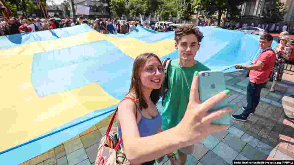 Флаг сшили в Донецкой области, откуда его доставили в Киев. Вечером 15 июня флаг отправят во Львов, а 16 июня его разместят на площади возле памятника Тарасу Шевченко. Там все желающие также смогут оставить свои пожелания. Оттуда флаг отправится в Одессу.
