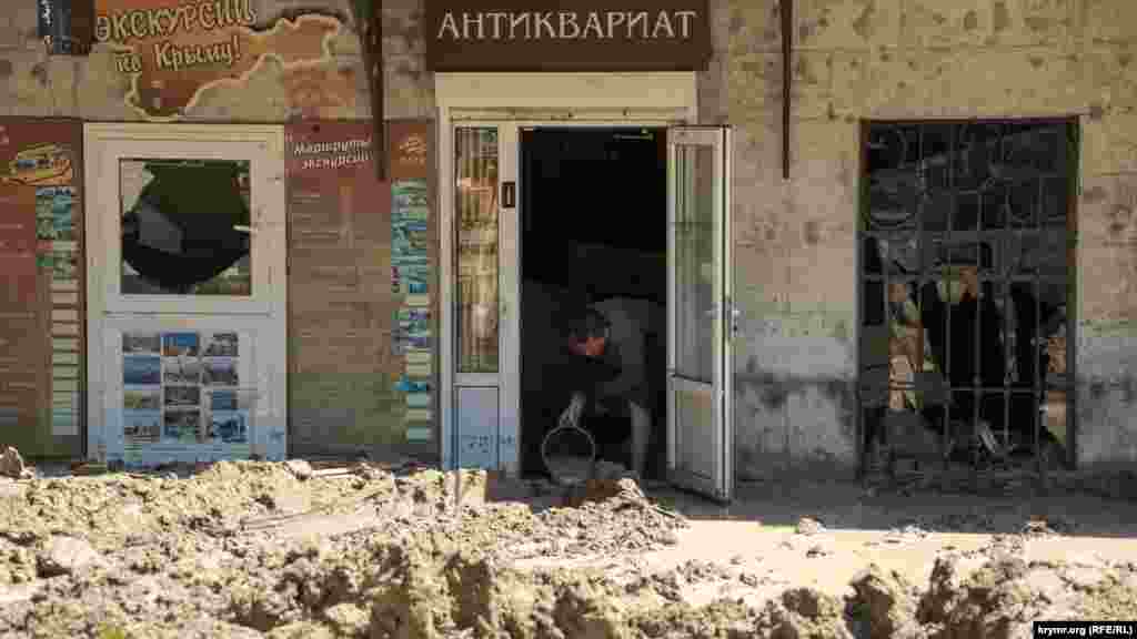 Жители курортной столицы Крыма продолжают устранять последствия небывалого наводнения. Где-то воду выкачивают насосами, а где-то – вычерпывают вручную.