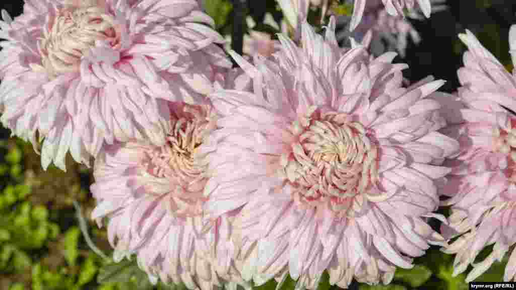 В этом году бал хризантем в Никитском ботсаду открылся в 66-ой раз и получил название «Золотой цветок». На основной площадке в центре высадили крупноцветковые хризантемы, но из-за жаркой погоды октября они еще не успели распуститься. Зато мелкоцветоковые сорта уже вовсю радуют глаз гостей бала. Корреспондент Крым.Реалии запечатлел на фото главных «виновниц торжества» и посетителей, которые пришли насладиться их красотой.