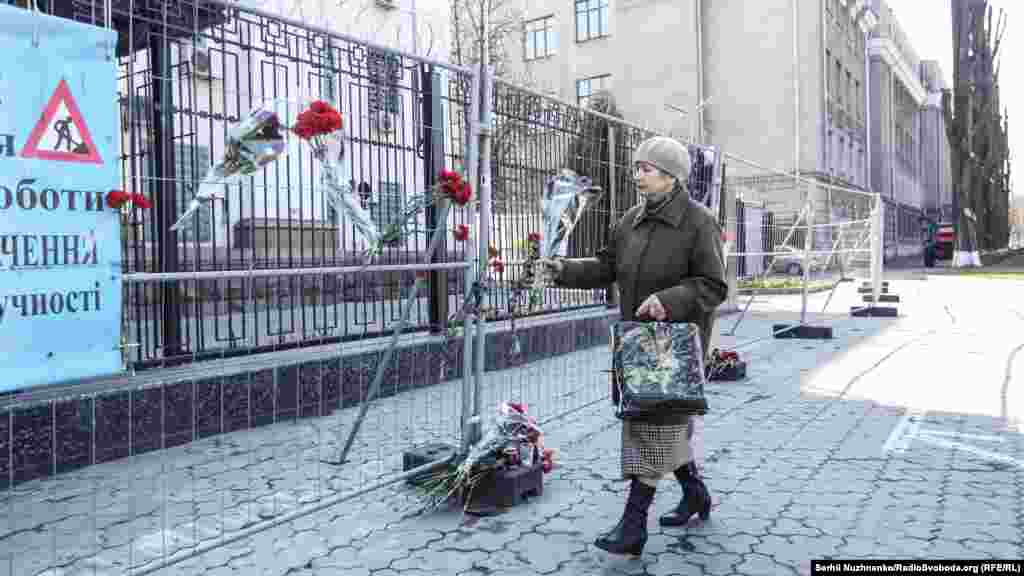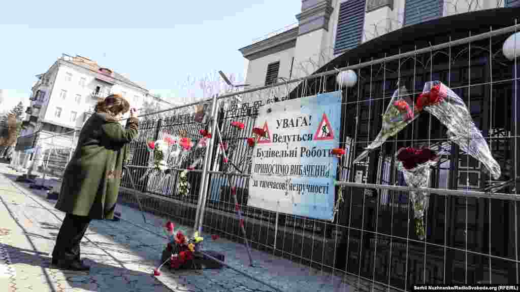 Киевляне несут цветы к посольству России в память о погибших в Санкт-Петербурге (фотогалерея)