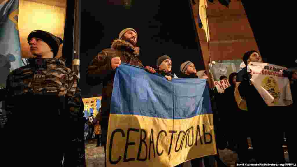 В Киеве на Майдане независимости 26 февраля прошел митинг солидарности с крымчанами, проживающими на аннексированном Россией полуострове. На акцию собралось более 200 человек. На митинг, в частности, пришли заместитель председателя Меджлиса крымскотатарского народа Ахтем Чийгоз, татарский активист, бывший политзаключенный Рафис Кашапов. Спикеры отметили, что подобные акции важны для крымчан, которые «остались жить в оккупации».
