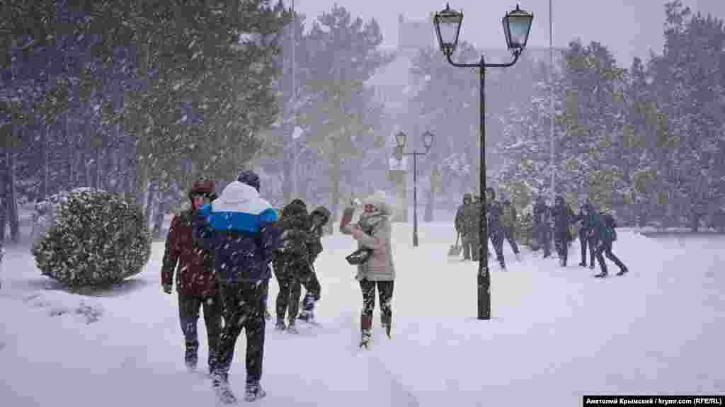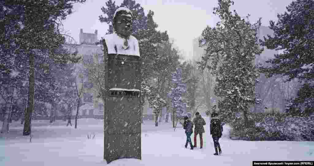 Снегопад изменил облик «всесоюзного старосты» Михаила Калинина, имя которого носил бывший Крымский сельхозинститут