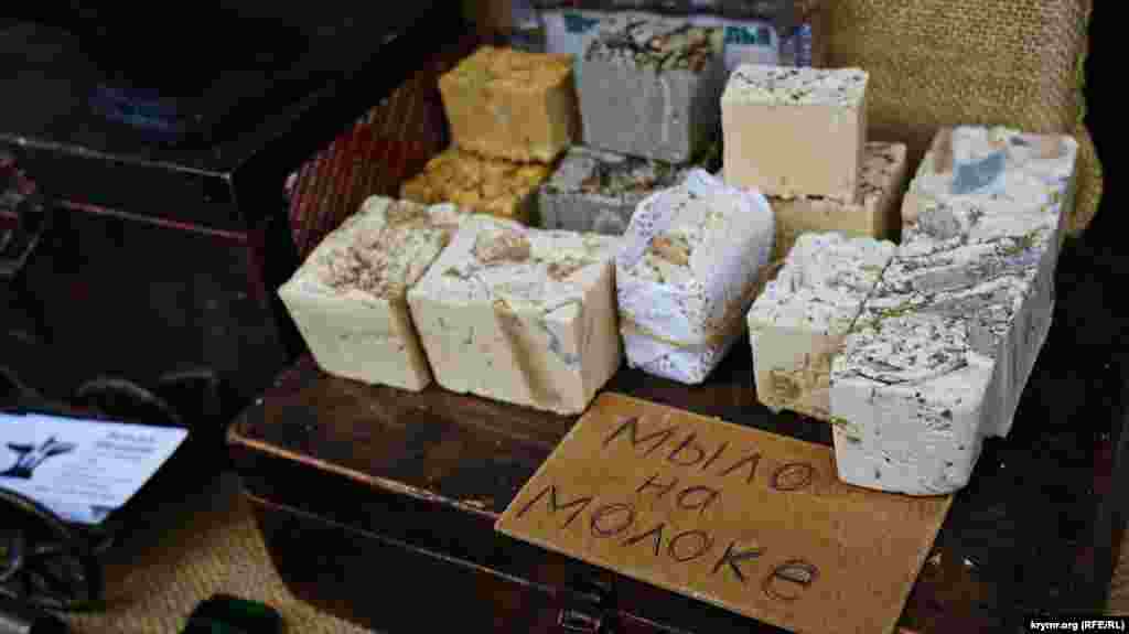На площади Ленина в Симферополе в честь «годовщины референдума» устроили ярмарку: развернули торговые палатки с сувенирной продукцией и патриотической символикой. Детей развлекали аниматоры: показывали им авиамодели и мотоциклы.