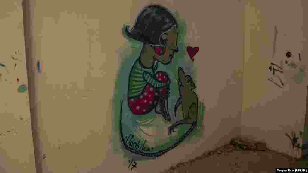 Внутри здания казармы на стенах граффити на любой вкус, напоминает музей уличного искусства