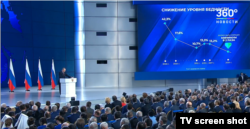 Во время выступления Путина продемонстрировали статистику, согласно которой в России в 2000 году за чертой бедности находились 42 процента населения.