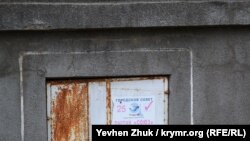 Снова возвращаюсь на площадь и на ржавой двери неработающего магазина случайно замечаю выцветшую, но еще читаемую листовку от партии «Союз» с выборов в горсовет 2010 года. Флаги Украины, России и Беларуси. Это партия известного крымского богача и политика, украинского нардепа трех созывов Льва Миримского, кто не помнит. Миримского уж с нами нет, партия не понятно, жива или мертва, а плакатик все висит.