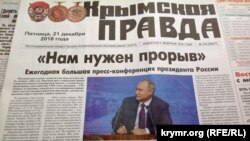 «Крымская правда» в статье под заголовком «Нам нужен прорыв» рассказывает о ежегодной пресс-конференции президента России.