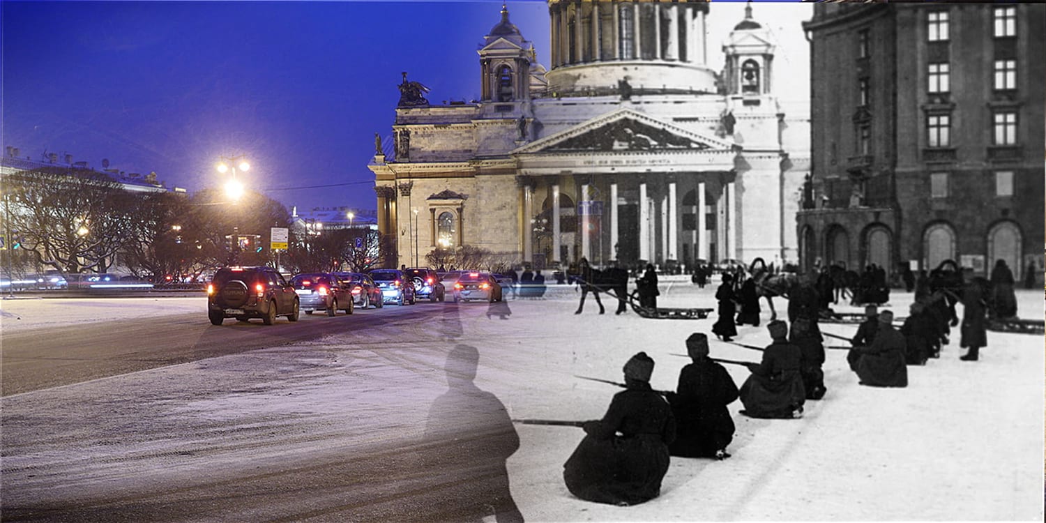 Революция 1917 года в России повернула ход не только российской, но и мировой истории. Прошедшие сто лет вместили в себя крушение, возрождение и новый распад империи. Но, как показывают эти фотографии, две российские столицы Москва и Петербург за это время не сильно изменились.