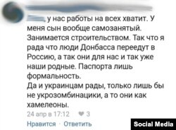 «У нас работы всем хватит. Я рада, что люди Донбасса переедут в Россию, а так они для нас и так уже наши родные. Паспорта лишь формальность. Да и украинцам рады, только лишь бы не укронацики, а то они как хамелеоны», – прокомментировали в интернете.