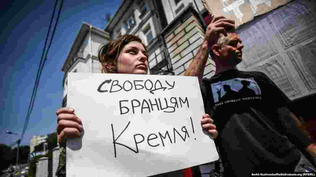 Около консульства России в Киеве прошла акция «Заберите своих – отдайте наших». Активисты призвали обменять задержанных в Украине российских граждан на украинских политзаключенных в России.