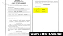 Журналисты «Схем» получили протокол собрания от ноября 2014 года, на котором принималось решение о регистрации российского ООО «Санаторий «Коралл» в Крыму в «связи с приведением в соответствие с законодательством Российской Федерации». На нем есть подпись и Натальи Щекиной, и Фаины Тедеевой. Виктор Крейдич, как отмечено, отсутствовал.