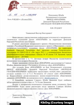 В Херсонской области письма от руководства «Юнармии» прямо влияют на действия чиновников российской администрации, о чем свидетельствуют документы по утечке от KibOrg.