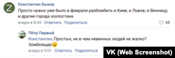 Воинственную риторику поддерживает Константин Быков, жалея о том, что еще в феврале Россия не разбомбила «Киев, Львов и Винницу».